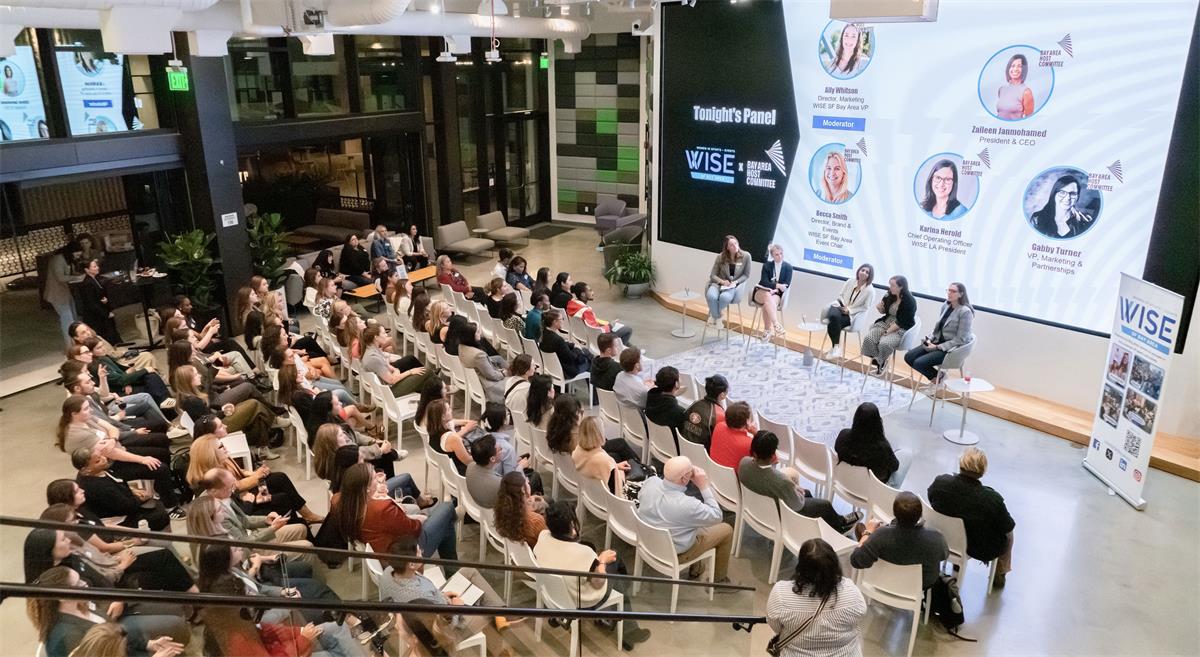 On a perfect evening, in a spectacular setting, WISE SF Bay Area welcomed over 100 attendees (one of our largest events to date) to listen and engage in a panel event featuring the Bay Area Host Committees top executives; President and CEO, Zaileen Janmohamed, Karina Herold, COO and Gabby Turner, VP of Marketing and Partnerships were part of a very special eventing.