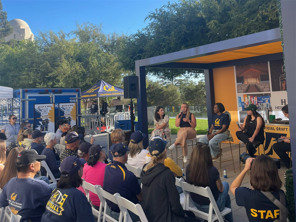 The Women in Sports Panel ahead of the Homecoming Cal vs. Duke matchup brought together an inspiring group of leaders for an afternoon of connection, insight, and empowerment. Moderated by Dr. Marissa Nichols, Senior Woman Administrator at Cal Athletics, the conversation featured Charmin Smith, Head Women’s Basketball Coach at Cal; Kristen Rodgers, Director of Brand, Retail, and Media at Plug & Play Tech; Luca Deza, Founder of DivineTime Agency; and Mackenzie Trago, Director of Ticket Sales at Bay FC.