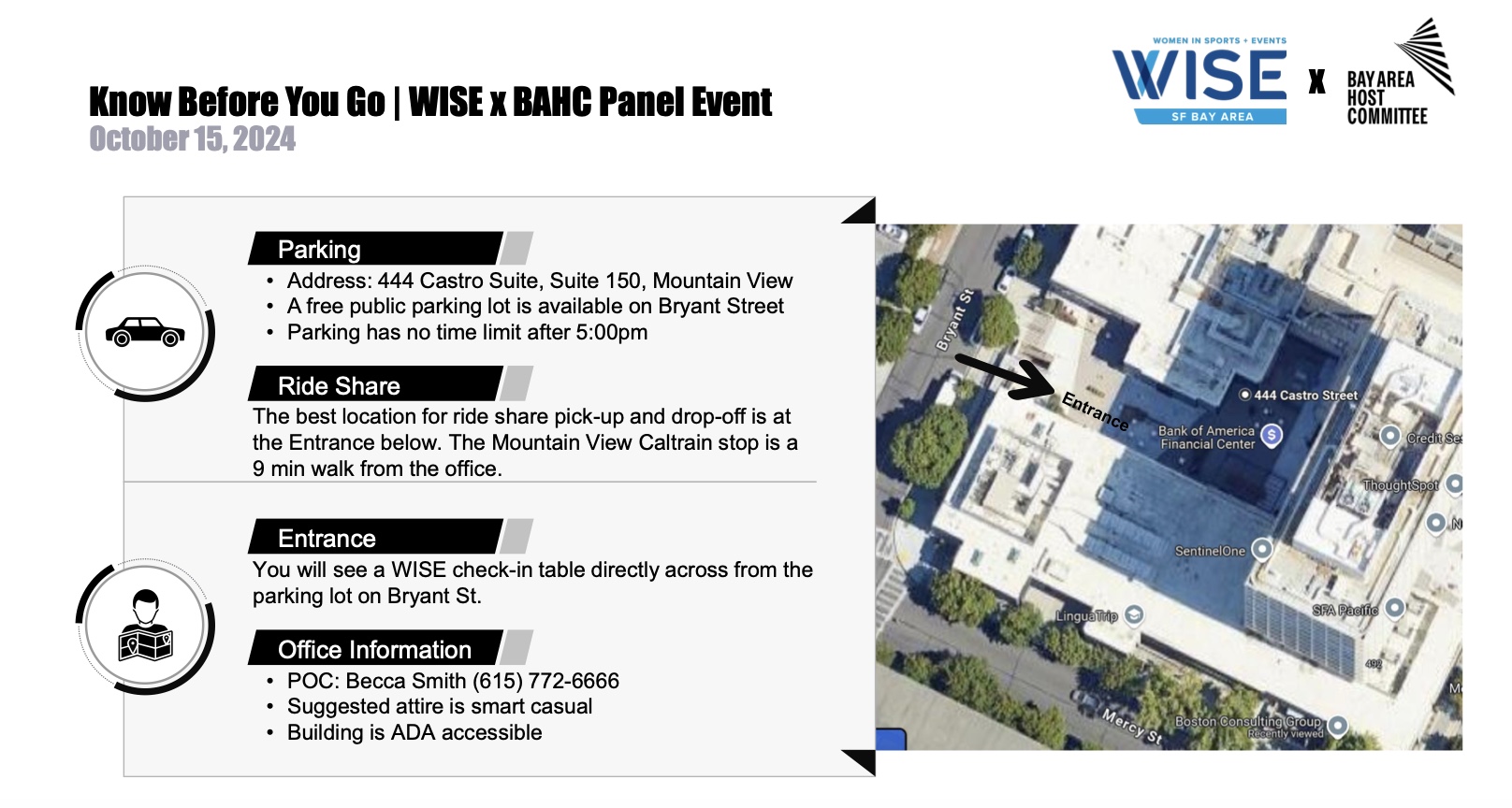 WISE SF Bay Area is thrilled to announce that our event with the Bay Area Host Committee (BAHC) for an evening of networking and panel discussion around BAHC’s mission to unite the Bay Area through sport is SOLD OUT.